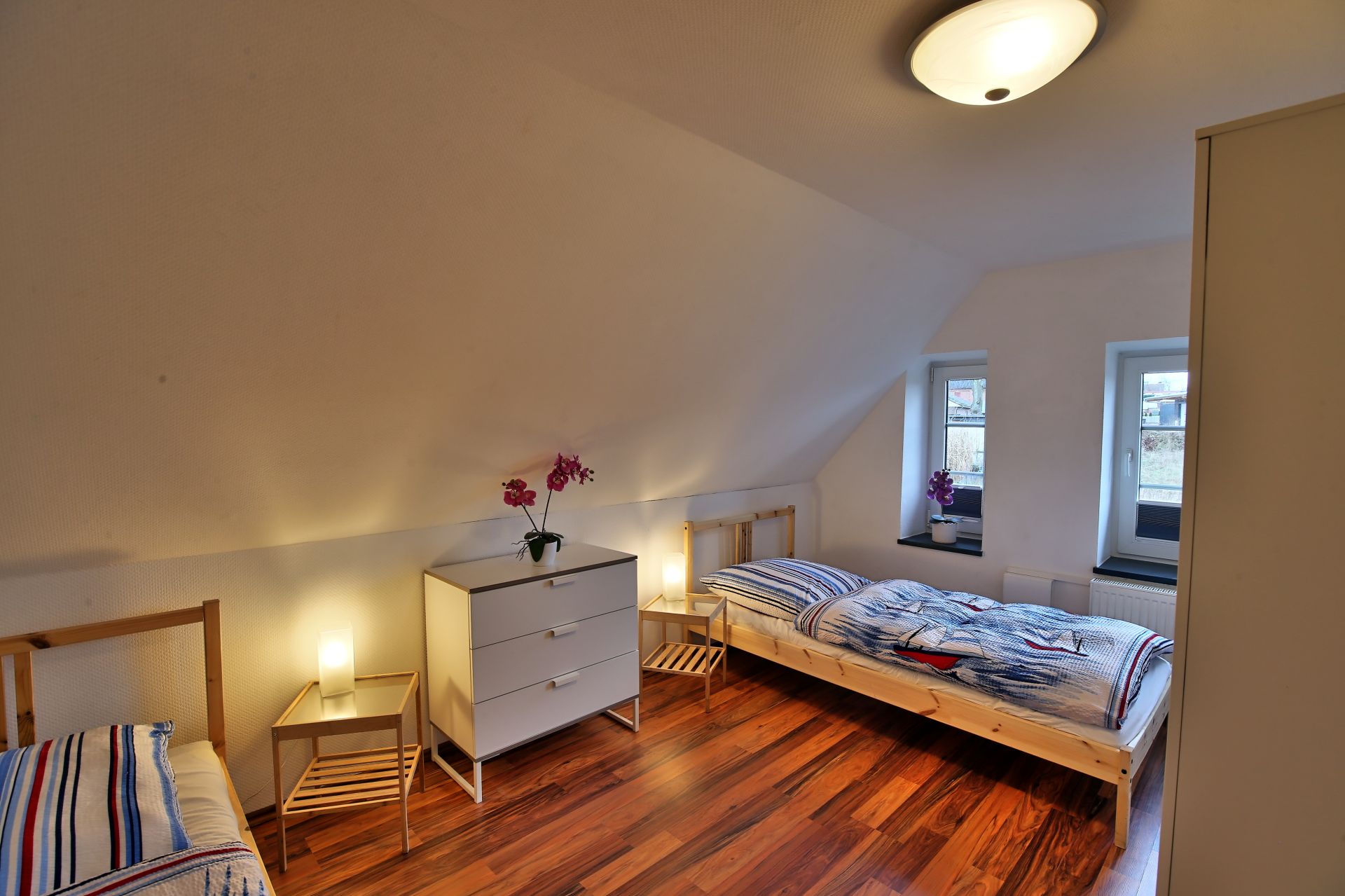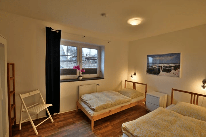 Кухнята е оборудвана със съдомиялна машина, печка, микровълнова печка и чайник. В 2 съседни стаи има място за 2 души на отделни легла.